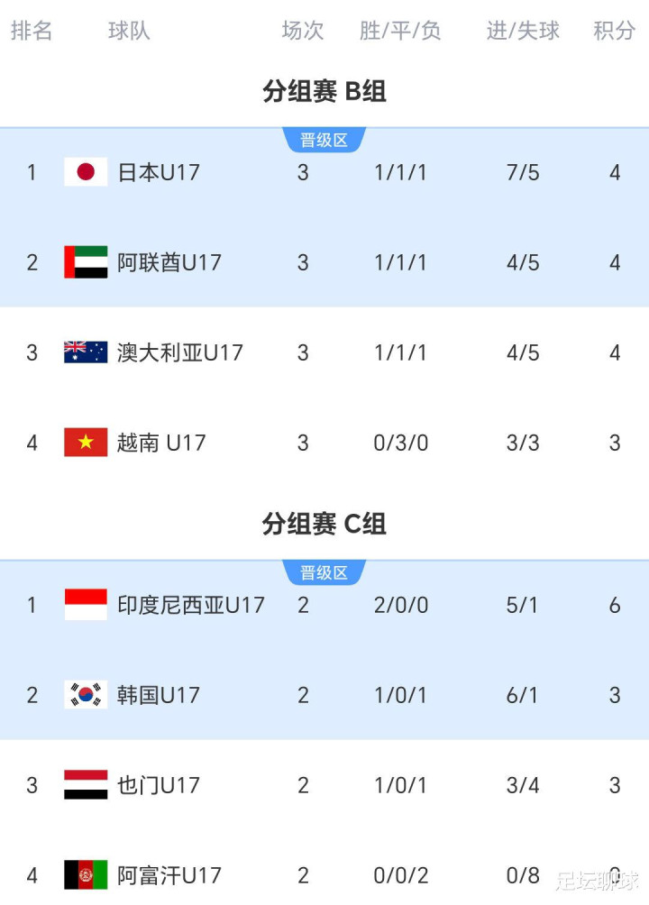 北京时间4月11日凌晨,U17亚洲杯小组赛第3轮继续进行,B组、C组的四场比赛全部结束,韩国1-0击败也门,印尼2-0战胜阿富汗,日本2-3输给澳大利亚,越南1-1打平阿联酋,上演疯狂一夜。