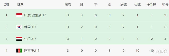 同组另外一场比赛,印尼依靠下半场补时阶段的2个进球,最终2-0击败阿富汗,这样印尼3轮全胜积9分锁定头名,韩国2连胜积6分锁定第二,两队携手晋级八强。